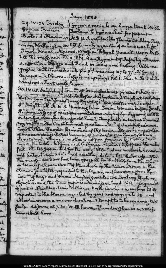 View full, authoritative transcriptions with page images of the diaries at John Quincy Adams Digital Diary part of the Primary Source Cooperative at the MHS.