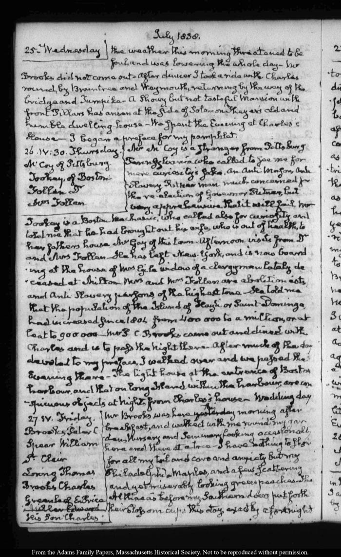 View full, authoritative transcriptions with page images of the diaries at John Quincy Adams Digital Diary part of the Primary Source Cooperative at the MHS.