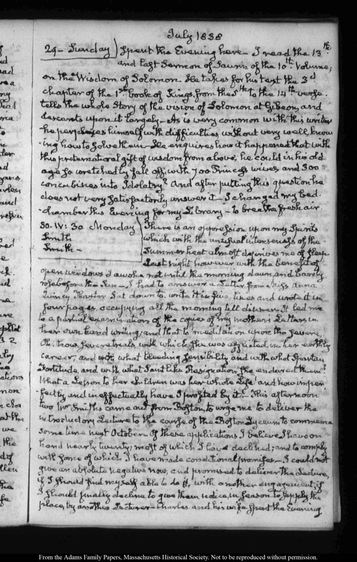 View full, authoritative transcriptions with page images of the diaries at John Quincy Adams Digital Diary part of the Primary Source Cooperative at the MHS.