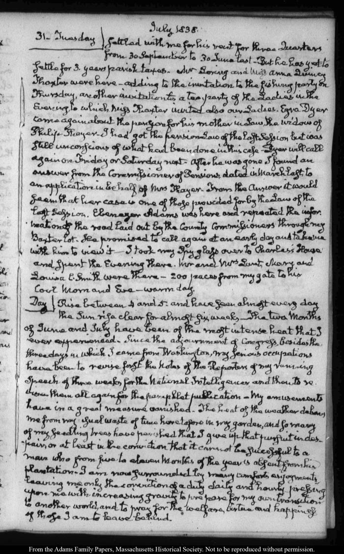 View full, authoritative transcriptions with page images of the diaries at John Quincy Adams Digital Diary part of the Primary Source Cooperative at the MHS.