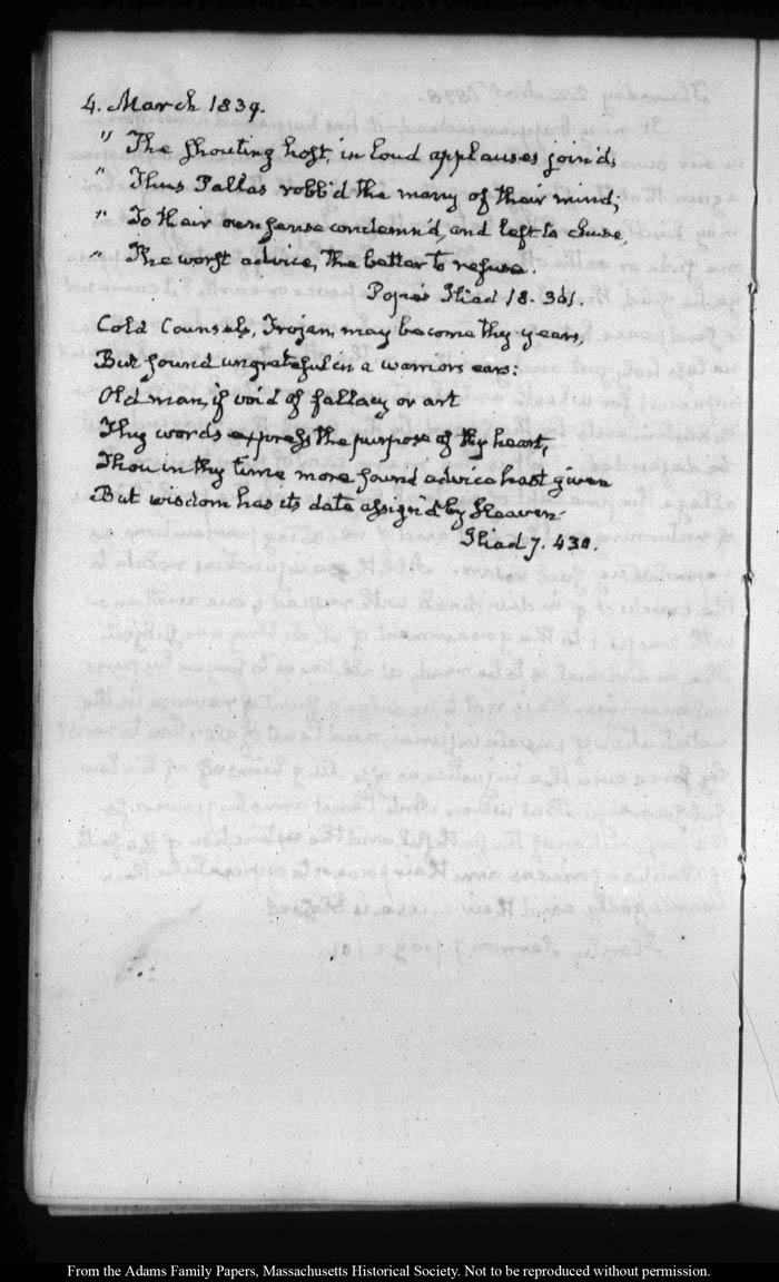 View full, authoritative transcriptions with page images of the diaries at John Quincy Adams Digital Diary part of the Primary Source Cooperative at the MHS.