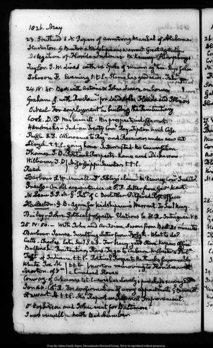 View full, authoritative transcriptions with page images of the diaries at John Quincy Adams Digital Diary part of the Primary Source Cooperative at the MHS.