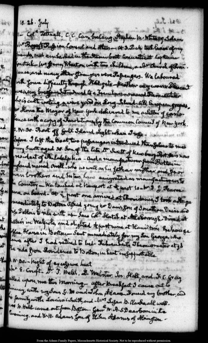 View full, authoritative transcriptions with page images of the diaries at John Quincy Adams Digital Diary part of the Primary Source Cooperative at the MHS.