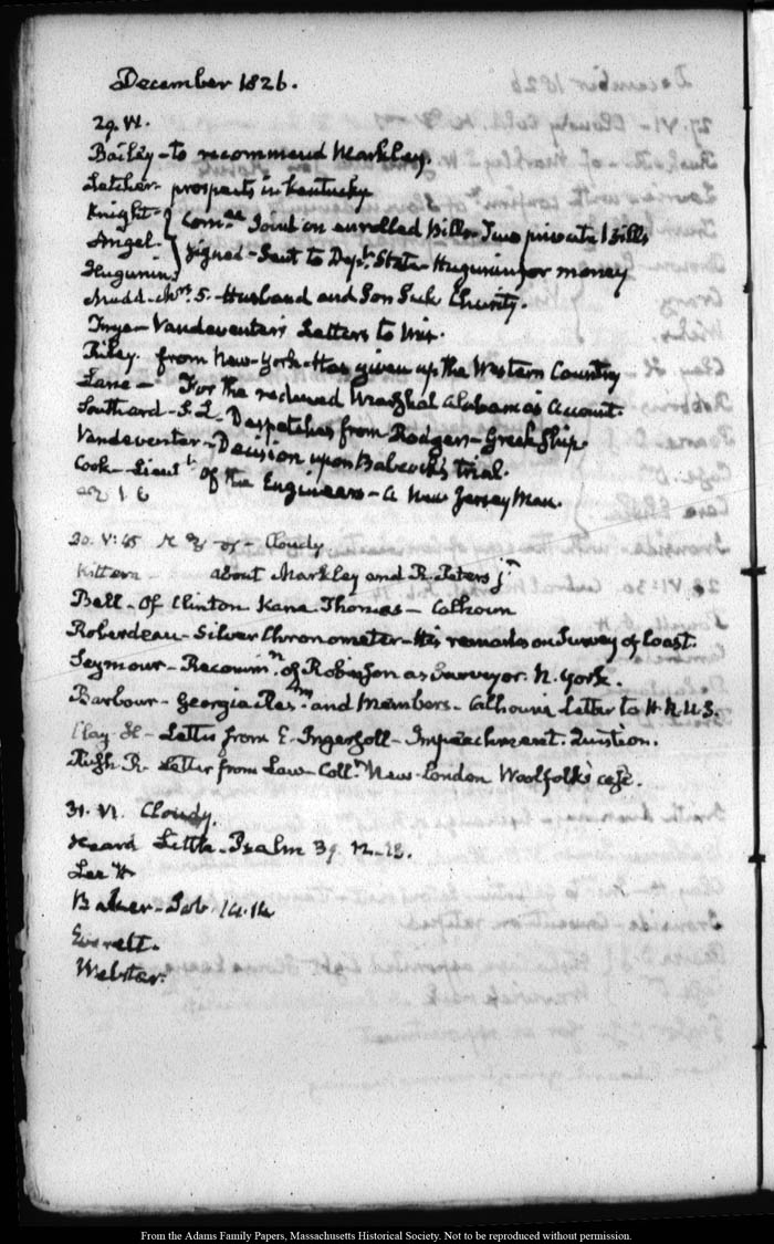 View full, authoritative transcriptions with page images of the diaries at John Quincy Adams Digital Diary part of the Primary Source Cooperative at the MHS.