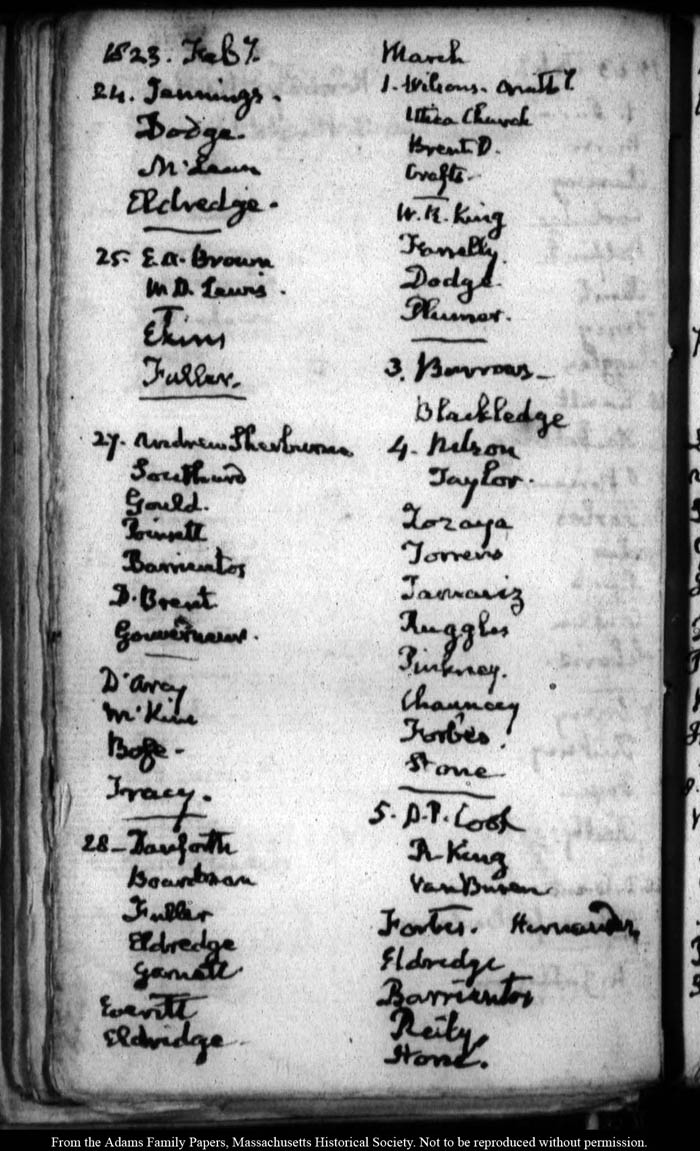 View full, authoritative transcriptions with page images of the diaries at John Quincy Adams Digital Diary part of the Primary Source Cooperative at the MHS.
