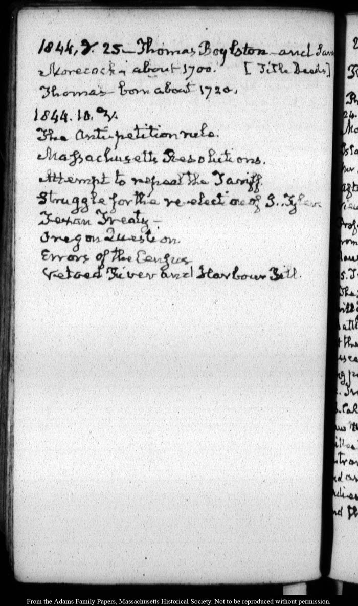 View full, authoritative transcriptions with page images of the diaries at John Quincy Adams Digital Diary part of the Primary Source Cooperative at the MHS.