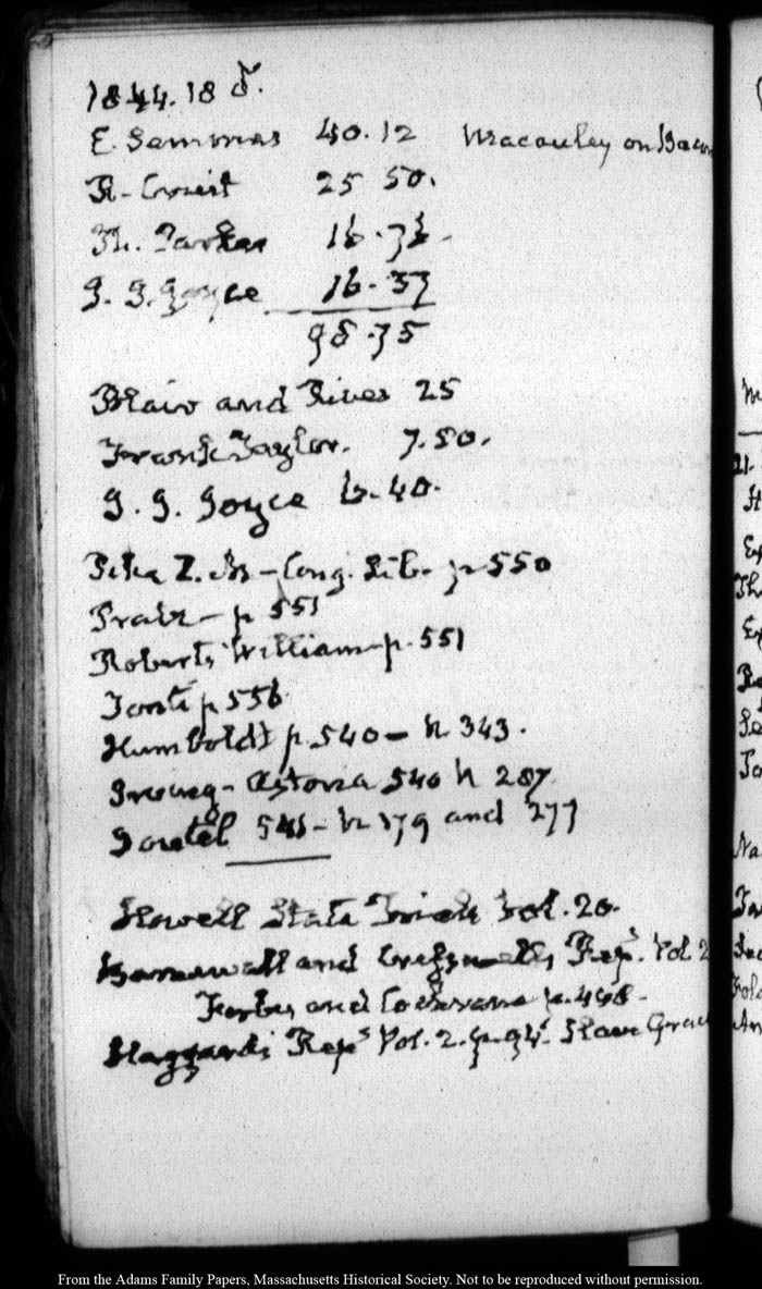 View full, authoritative transcriptions with page images of the diaries at John Quincy Adams Digital Diary part of the Primary Source Cooperative at the MHS.