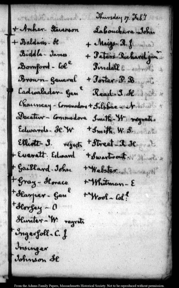 View full, authoritative transcriptions with page images of the diaries at John Quincy Adams Digital Diary part of the Primary Source Cooperative at the MHS.