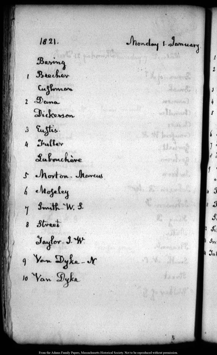 View full, authoritative transcriptions with page images of the diaries at John Quincy Adams Digital Diary part of the Primary Source Cooperative at the MHS.