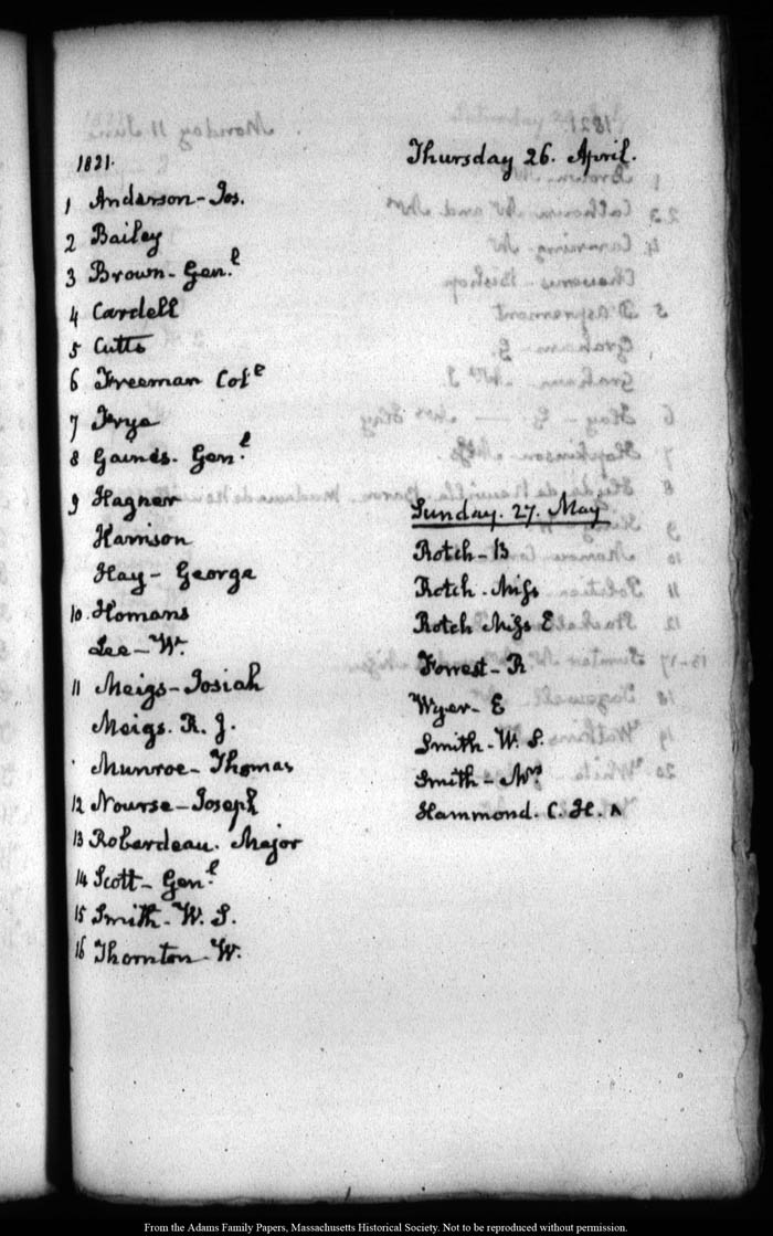 View full, authoritative transcriptions with page images of the diaries at John Quincy Adams Digital Diary part of the Primary Source Cooperative at the MHS.