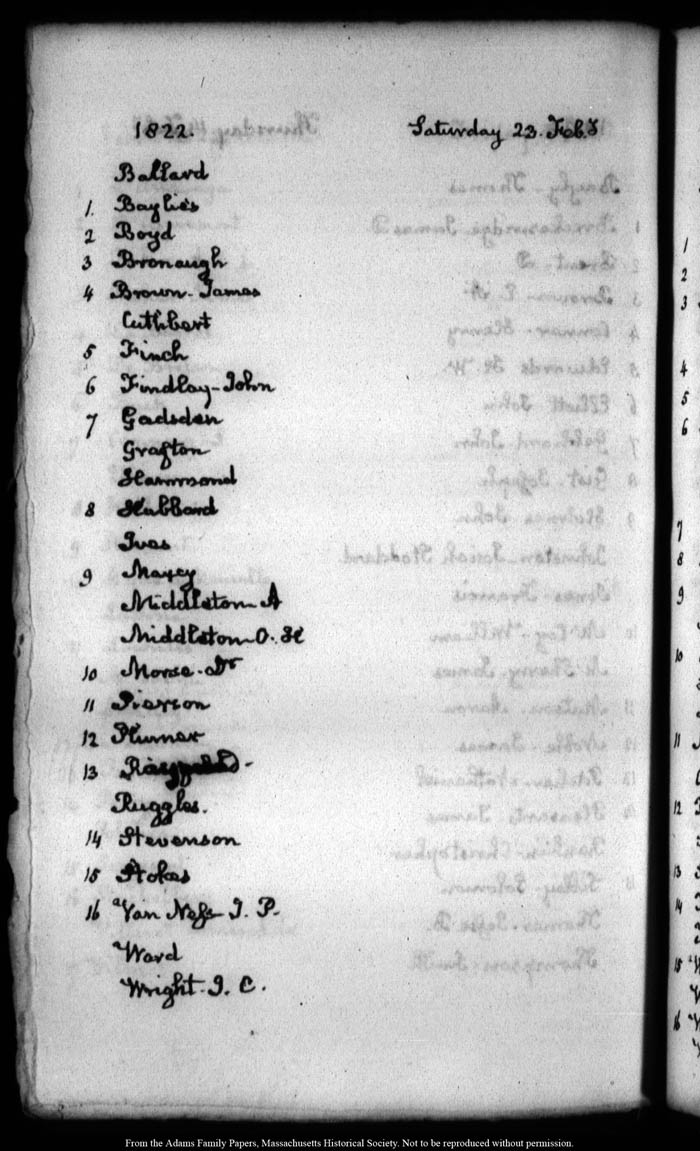 View full, authoritative transcriptions with page images of the diaries at John Quincy Adams Digital Diary part of the Primary Source Cooperative at the MHS.