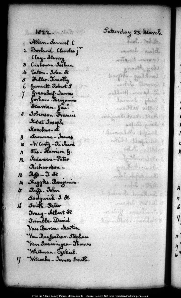 View full, authoritative transcriptions with page images of the diaries at John Quincy Adams Digital Diary part of the Primary Source Cooperative at the MHS.