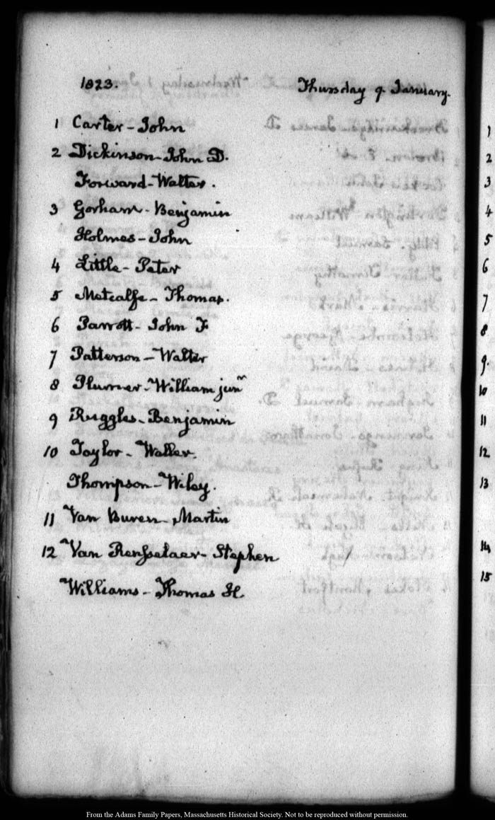 View full, authoritative transcriptions with page images of the diaries at John Quincy Adams Digital Diary part of the Primary Source Cooperative at the MHS.
