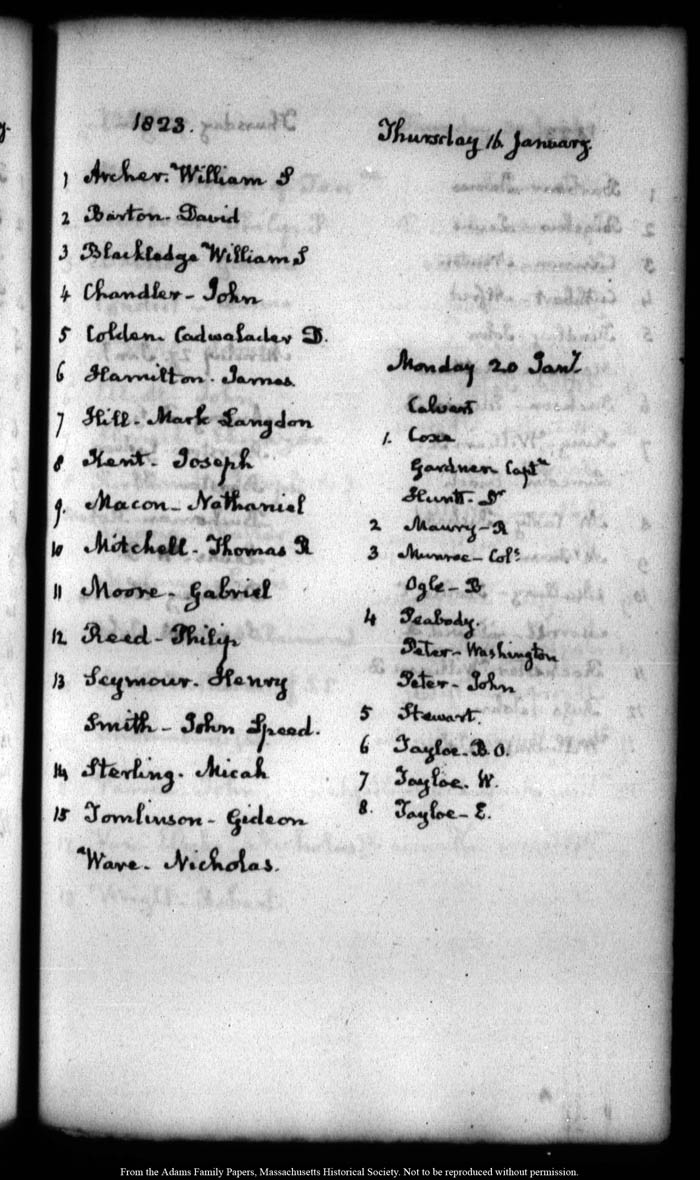 View full, authoritative transcriptions with page images of the diaries at John Quincy Adams Digital Diary part of the Primary Source Cooperative at the MHS.