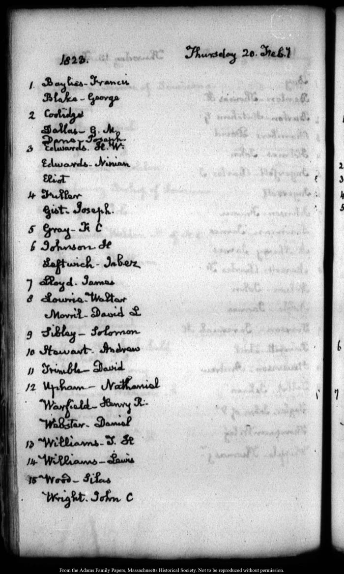View full, authoritative transcriptions with page images of the diaries at John Quincy Adams Digital Diary part of the Primary Source Cooperative at the MHS.