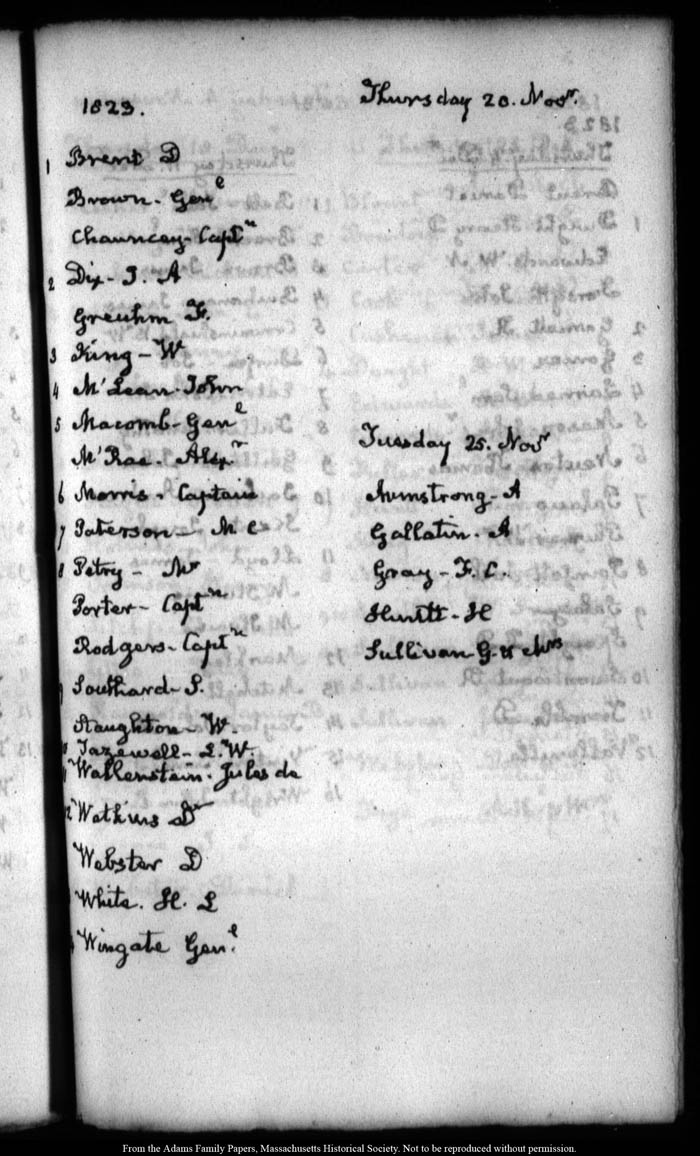 View full, authoritative transcriptions with page images of the diaries at John Quincy Adams Digital Diary part of the Primary Source Cooperative at the MHS.