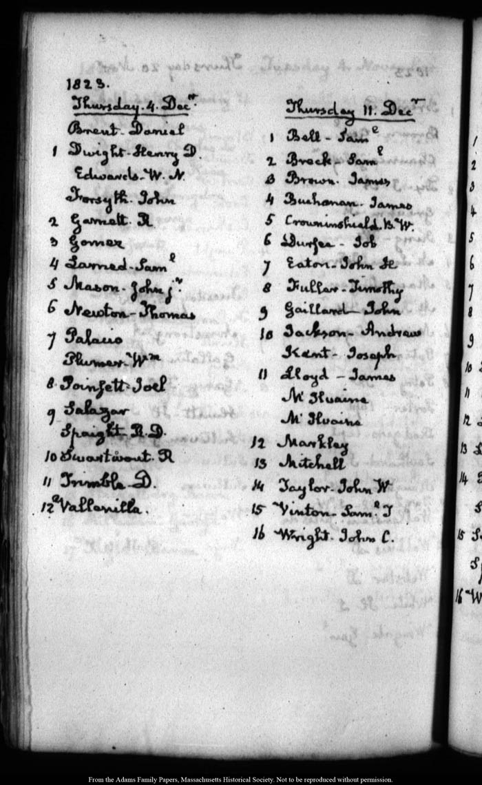 View full, authoritative transcriptions with page images of the diaries at John Quincy Adams Digital Diary part of the Primary Source Cooperative at the MHS.