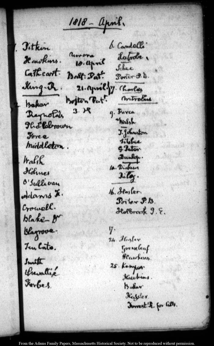 View full, authoritative transcriptions with page images of the diaries at John Quincy Adams Digital Diary part of the Primary Source Cooperative at the MHS.
