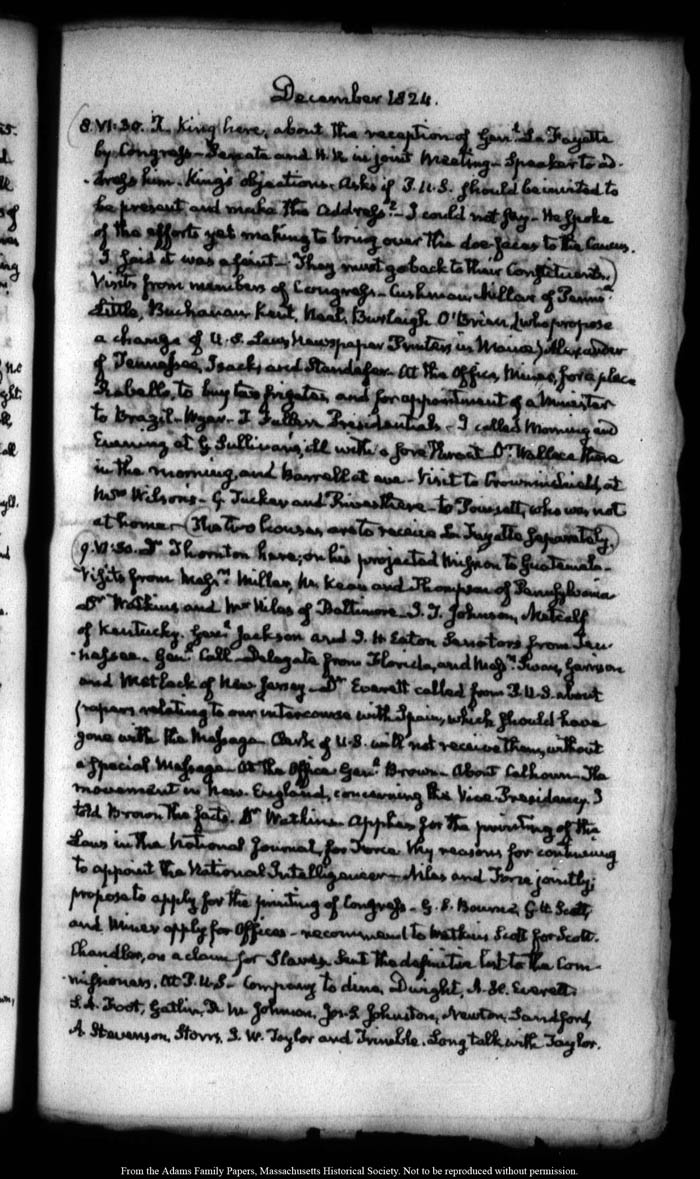View full, authoritative transcriptions with page images of the diaries at John Quincy Adams Digital Diary part of the Primary Source Cooperative at the MHS.