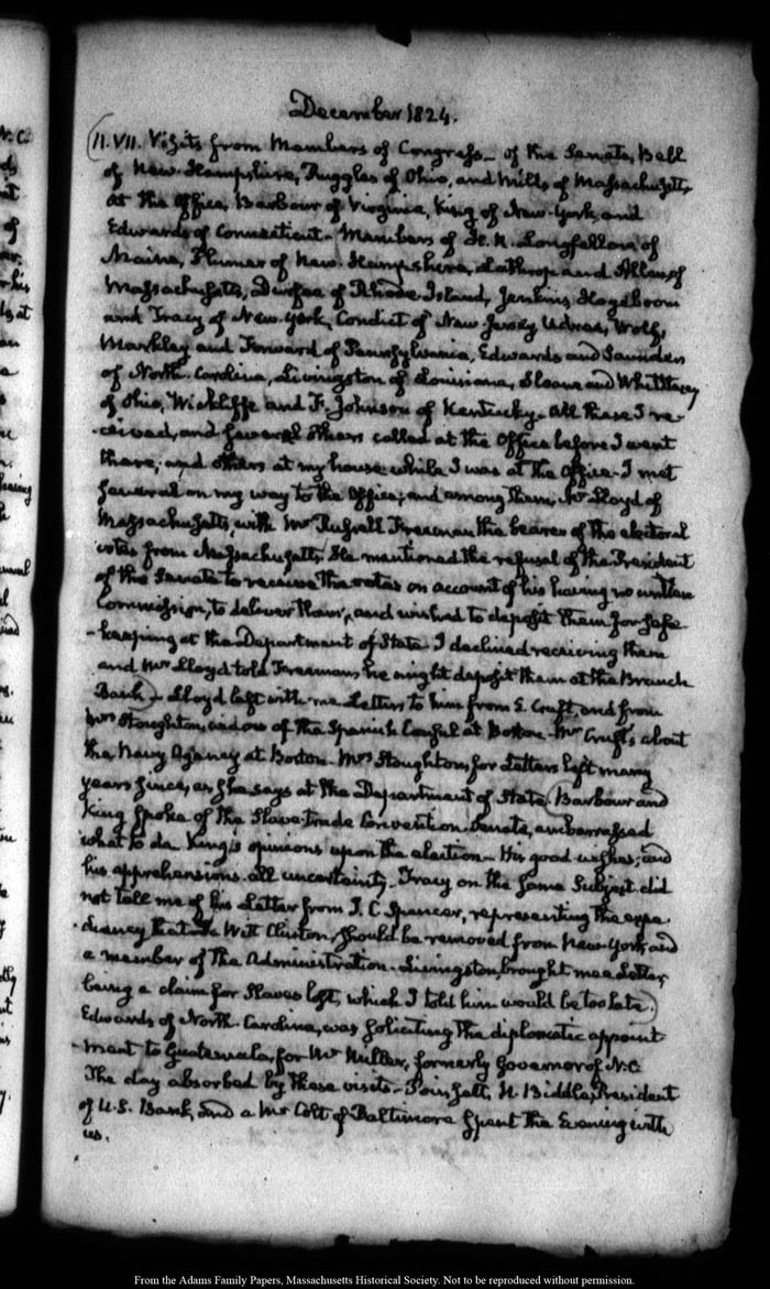 View full, authoritative transcriptions with page images of the diaries at John Quincy Adams Digital Diary part of the Primary Source Cooperative at the MHS.