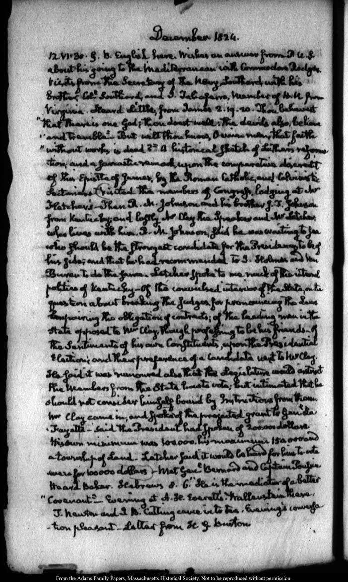 View full, authoritative transcriptions with page images of the diaries at John Quincy Adams Digital Diary part of the Primary Source Cooperative at the MHS.