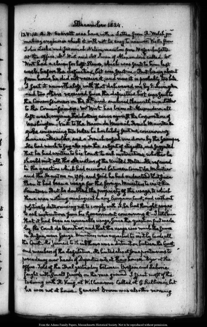 View full, authoritative transcriptions with page images of the diaries at John Quincy Adams Digital Diary part of the Primary Source Cooperative at the MHS.
