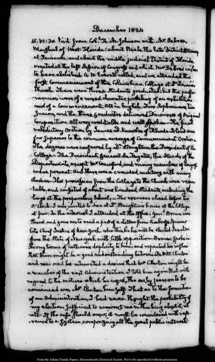 View full, authoritative transcriptions with page images of the diaries at John Quincy Adams Digital Diary part of the Primary Source Cooperative at the MHS.