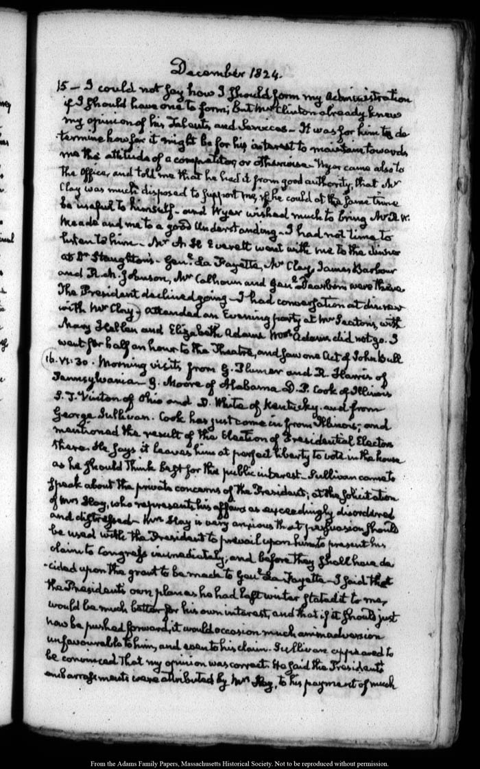 View full, authoritative transcriptions with page images of the diaries at John Quincy Adams Digital Diary part of the Primary Source Cooperative at the MHS.