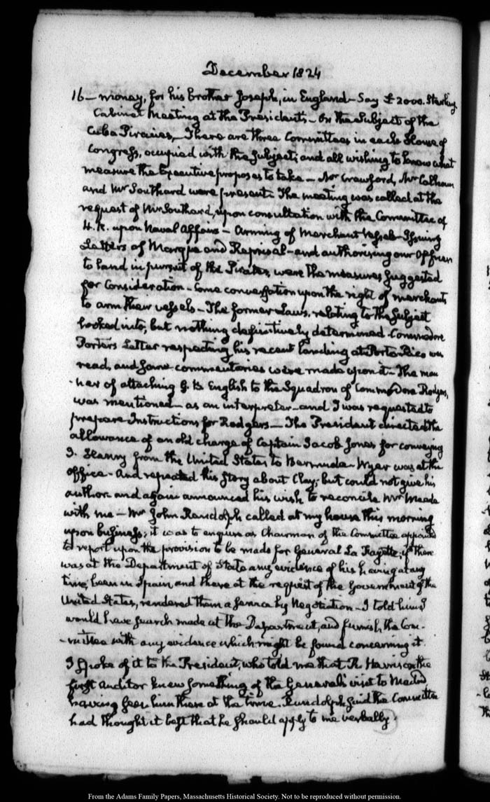 View full, authoritative transcriptions with page images of the diaries at John Quincy Adams Digital Diary part of the Primary Source Cooperative at the MHS.