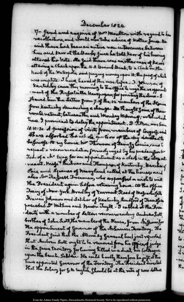 View full, authoritative transcriptions with page images of the diaries at John Quincy Adams Digital Diary part of the Primary Source Cooperative at the MHS.