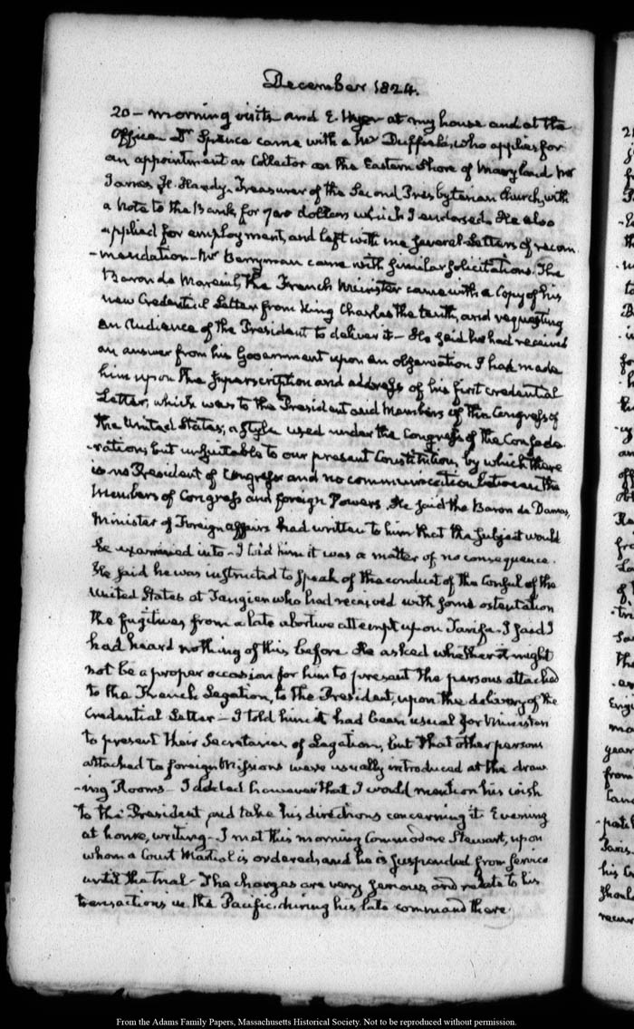 View full, authoritative transcriptions with page images of the diaries at John Quincy Adams Digital Diary part of the Primary Source Cooperative at the MHS.