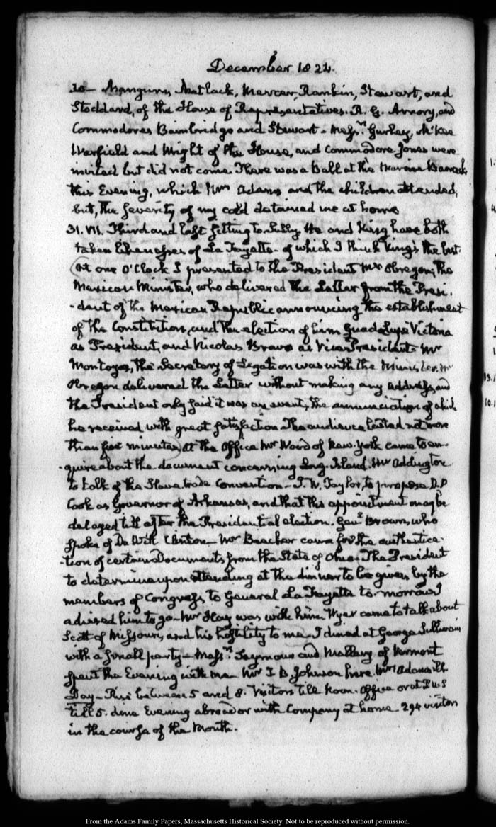 View full, authoritative transcriptions with page images of the diaries at John Quincy Adams Digital Diary part of the Primary Source Cooperative at the MHS.