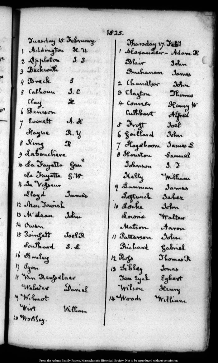 View full, authoritative transcriptions with page images of the diaries at John Quincy Adams Digital Diary part of the Primary Source Cooperative at the MHS.