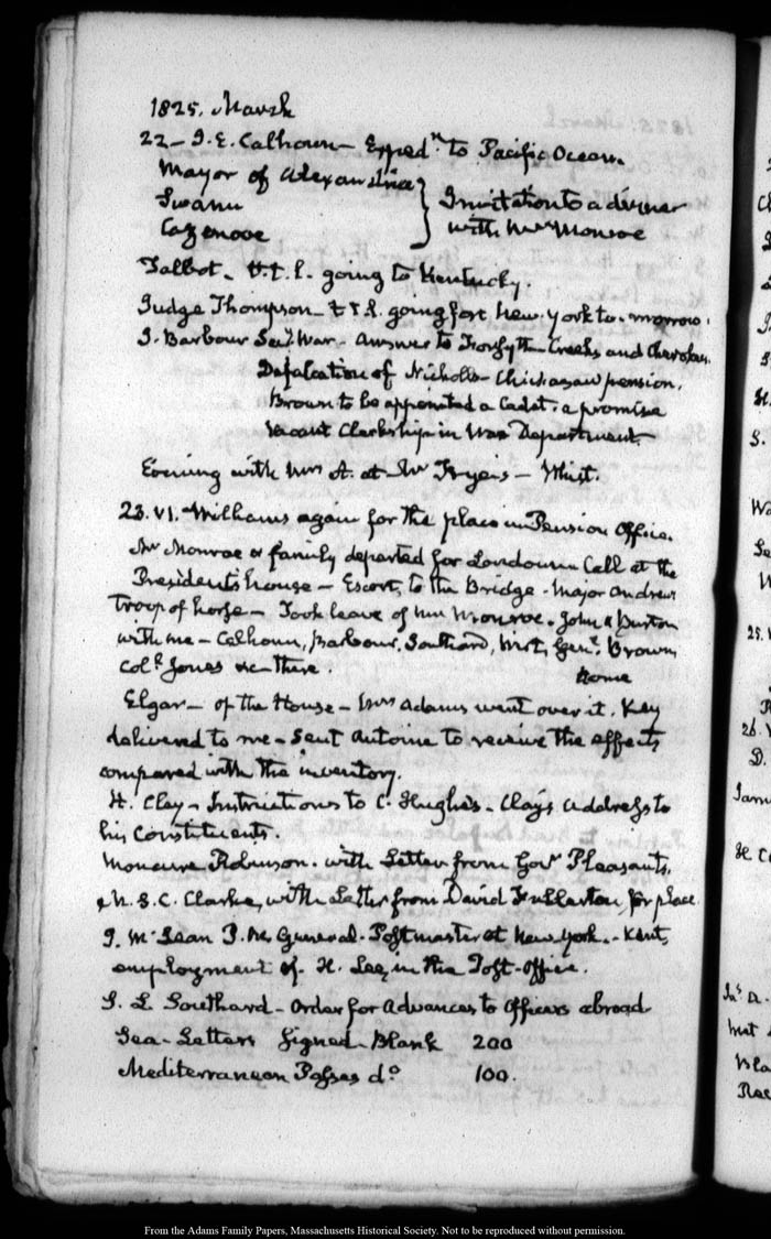 View full, authoritative transcriptions with page images of the diaries at John Quincy Adams Digital Diary part of the Primary Source Cooperative at the MHS.