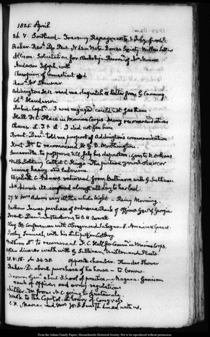 View full, authoritative transcriptions with page images of the diaries at John Quincy Adams Digital Diary part of the Primary Source Cooperative at the MHS.