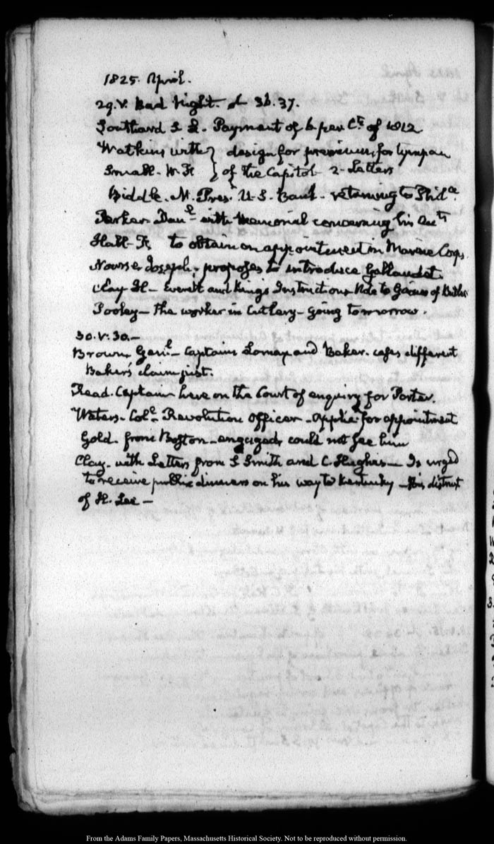 View full, authoritative transcriptions with page images of the diaries at John Quincy Adams Digital Diary part of the Primary Source Cooperative at the MHS.