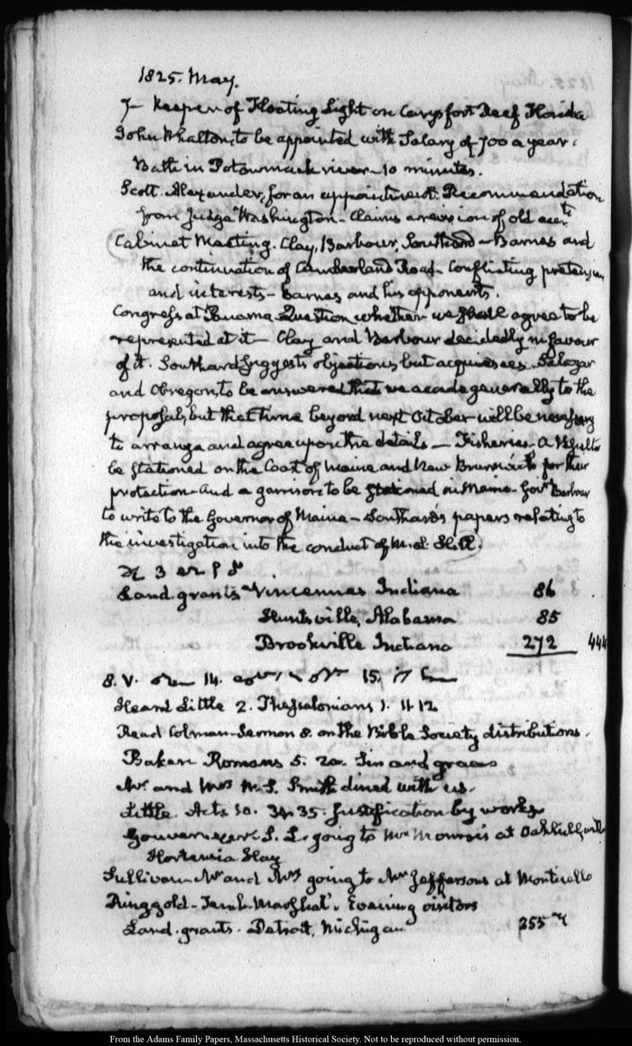 View full, authoritative transcriptions with page images of the diaries at John Quincy Adams Digital Diary part of the Primary Source Cooperative at the MHS.