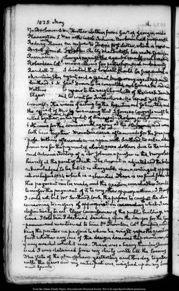 View full, authoritative transcriptions with page images of the diaries at John Quincy Adams Digital Diary part of the Primary Source Cooperative at the MHS.