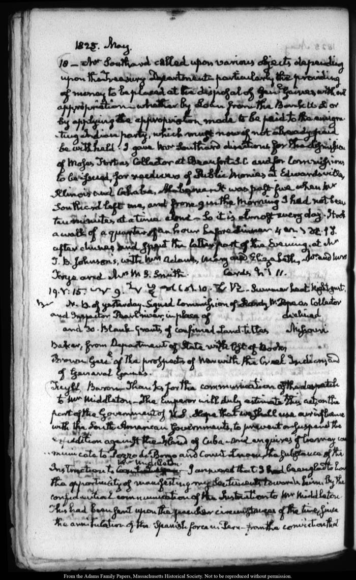 View full, authoritative transcriptions with page images of the diaries at John Quincy Adams Digital Diary part of the Primary Source Cooperative at the MHS.