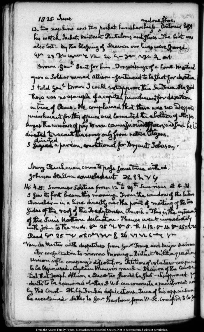 View full, authoritative transcriptions with page images of the diaries at John Quincy Adams Digital Diary part of the Primary Source Cooperative at the MHS.
