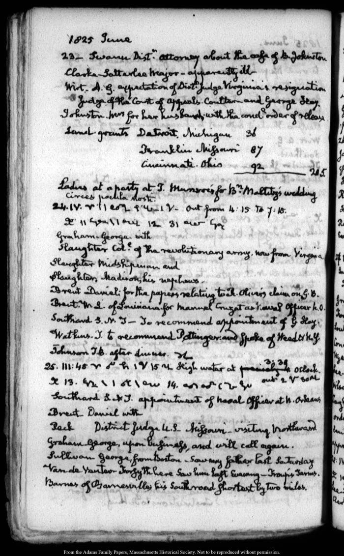 View full, authoritative transcriptions with page images of the diaries at John Quincy Adams Digital Diary part of the Primary Source Cooperative at the MHS.