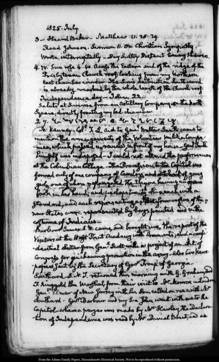 View full, authoritative transcriptions with page images of the diaries at John Quincy Adams Digital Diary part of the Primary Source Cooperative at the MHS.