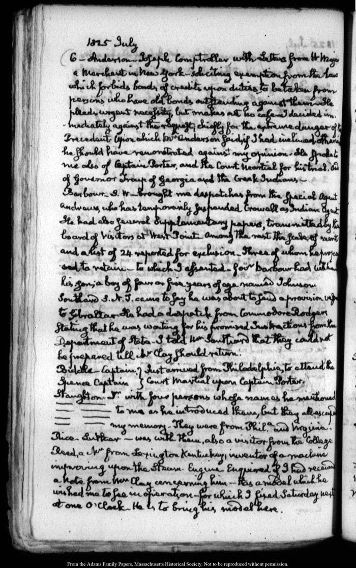 View full, authoritative transcriptions with page images of the diaries at John Quincy Adams Digital Diary part of the Primary Source Cooperative at the MHS.