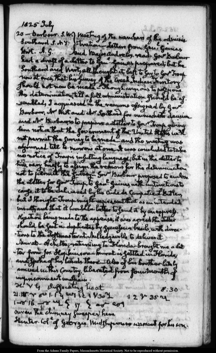 View full, authoritative transcriptions with page images of the diaries at John Quincy Adams Digital Diary part of the Primary Source Cooperative at the MHS.