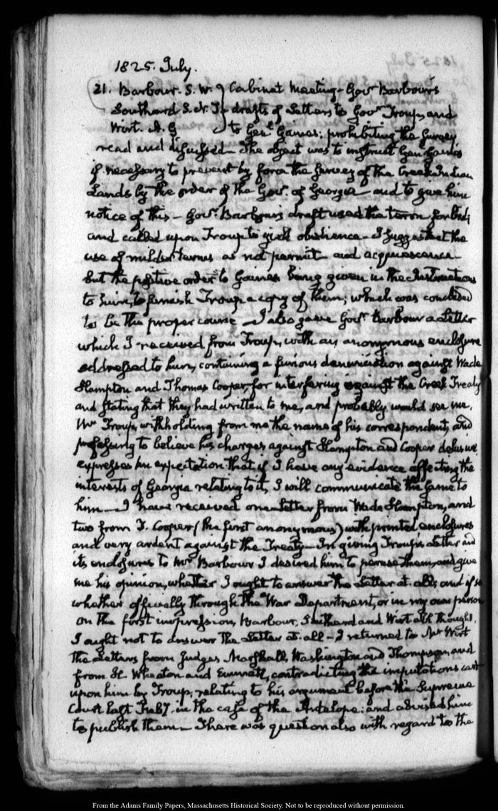 View full, authoritative transcriptions with page images of the diaries at John Quincy Adams Digital Diary part of the Primary Source Cooperative at the MHS.