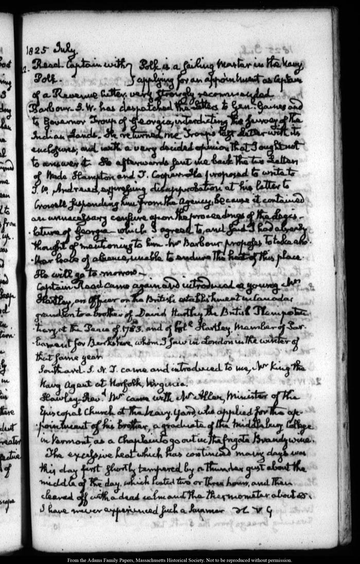 View full, authoritative transcriptions with page images of the diaries at John Quincy Adams Digital Diary part of the Primary Source Cooperative at the MHS.