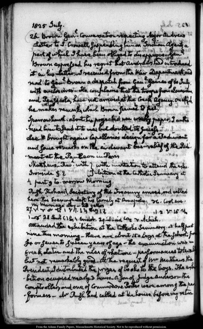 View full, authoritative transcriptions with page images of the diaries at John Quincy Adams Digital Diary part of the Primary Source Cooperative at the MHS.