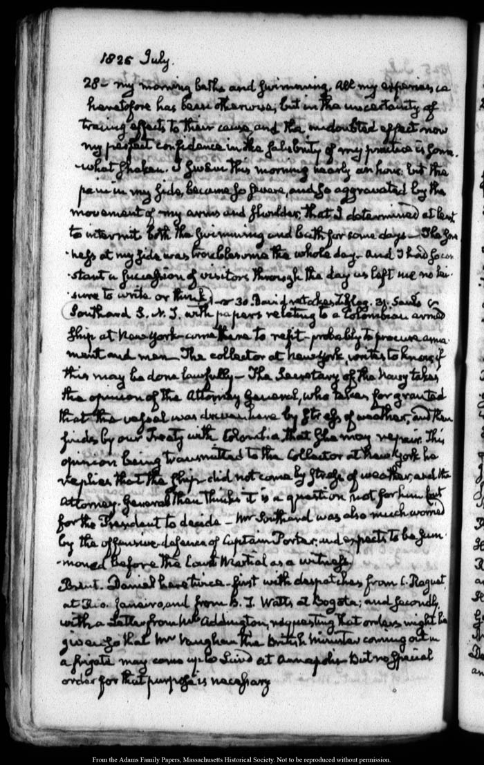 View full, authoritative transcriptions with page images of the diaries at John Quincy Adams Digital Diary part of the Primary Source Cooperative at the MHS.