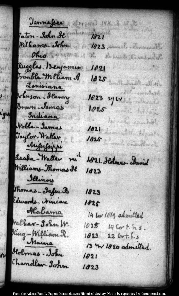 View full, authoritative transcriptions with page images of the diaries at John Quincy Adams Digital Diary part of the Primary Source Cooperative at the MHS.