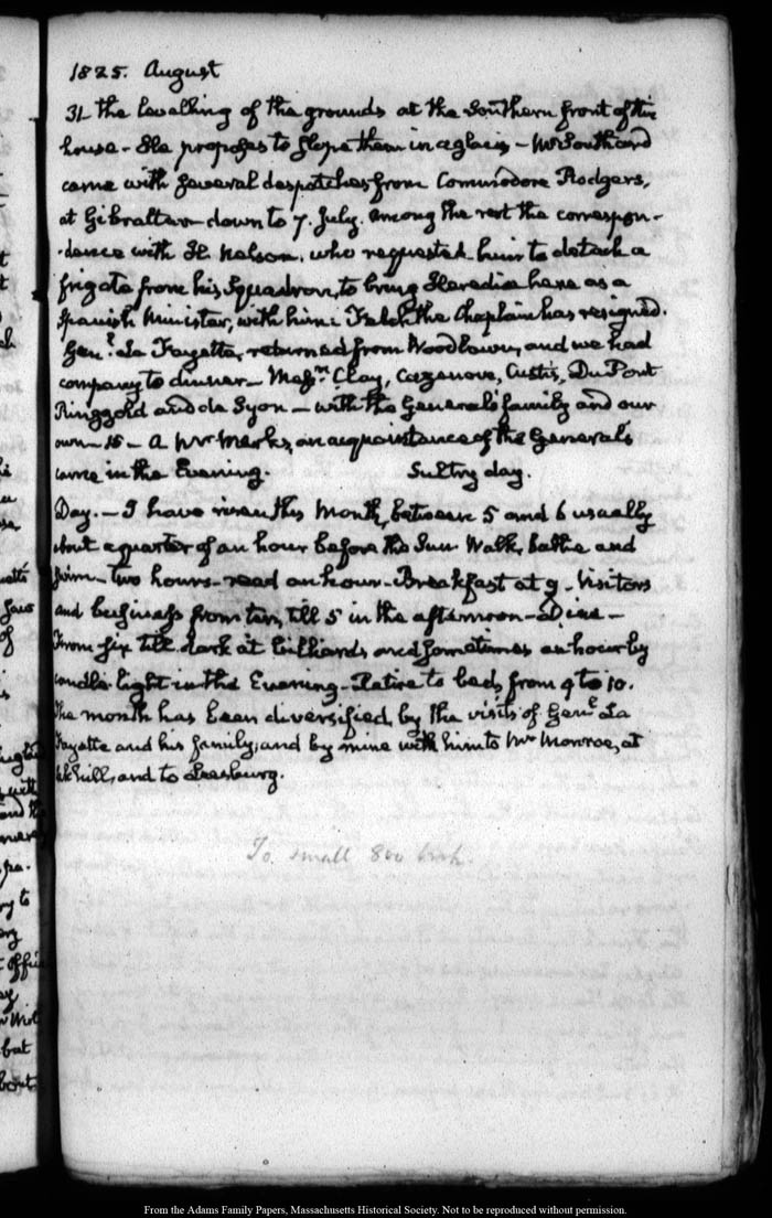 View full, authoritative transcriptions with page images of the diaries at John Quincy Adams Digital Diary part of the Primary Source Cooperative at the MHS.
